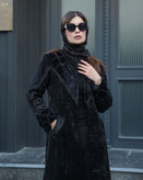 مانتو بلند مخمل ترکیب با پوست سنگدوزی