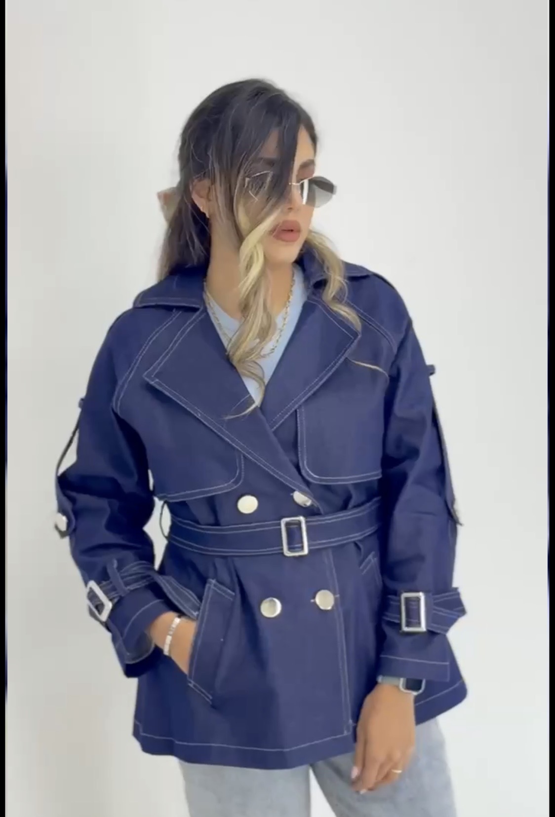 مانتو جین ۴دکمه کوتاه فری سایز